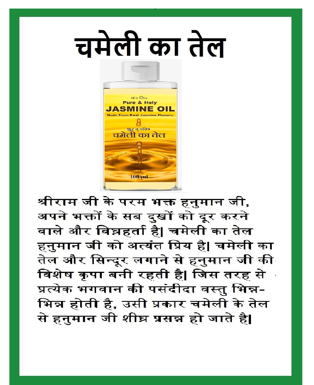 Jasmin Pooja Oil 100ml Perfect for Pooja Rituals, and Daily Worship Use